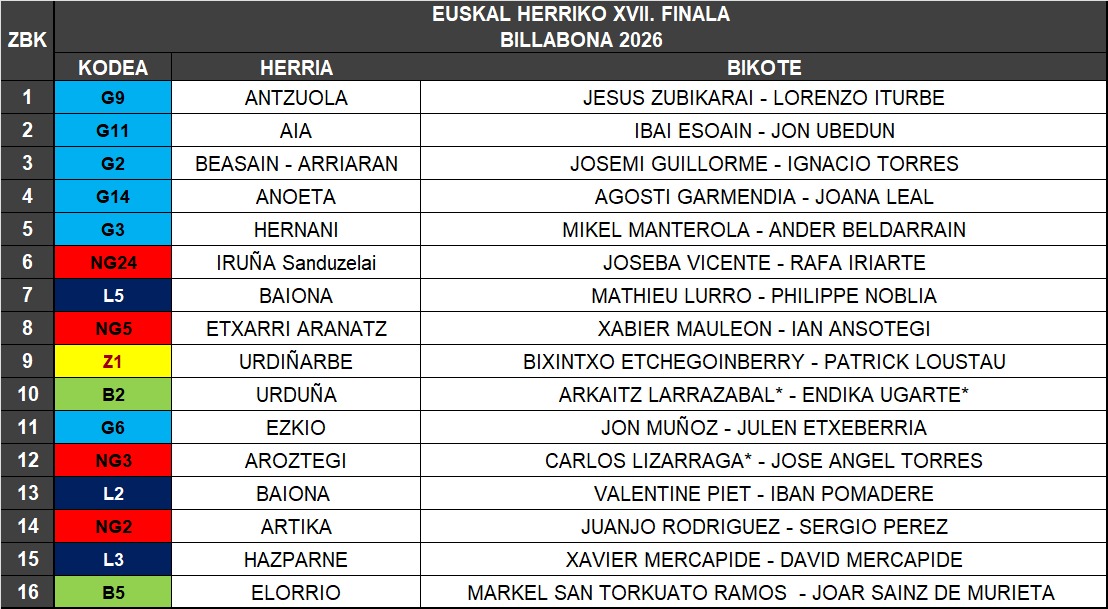 Eguraldi goibelarekin bildu dira Euskal Herri osotik etorritako muslariak lehen orduan. Goizean zehar ligilla eran jokatu dute, herri bazkariaren ondotik arratsaldeko zuzeneko kanporaketari ekin diote. Hemen duzue aurrera jarraitzen duten muslarien zerrenda.